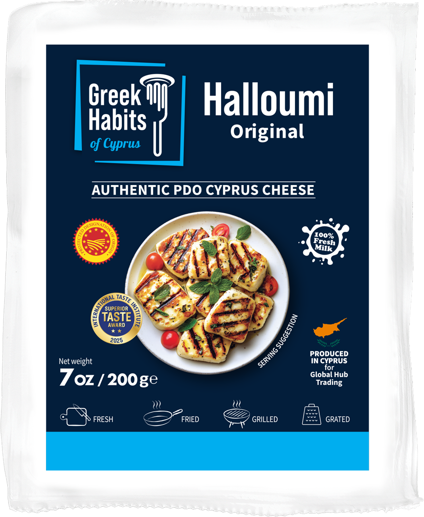 Crafted from a rich blend of fresh sheep’s, goat’s, and cow’s milk, authentic halloumi is a Cypriot treasure with centuries of tradition.